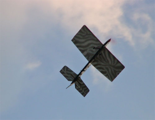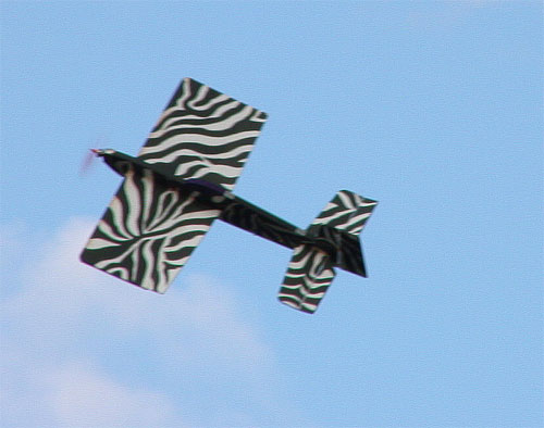 Vzhledem k tomu že tohle letadlo bylo mojí prvokonstrukcí moc nadějí sem tomu nedával ale pokus to byl nakonec sem celý stroj odložil do hangáru neboť místo letu jsem jen sekal trávu a mlátil s letadlem o zem. Po necelém půl roku přišla ta správná chvíle na to abych tuhle hromádku EPP naučil létat což se i stalo viz galerie. Jinak tento model asi dle mých chabých zkušeností není moc vhodný na naučení akrobatického létání neboť jeho velká plocha křídel je dost háklivá při jeho váze na sebemenší poryv vetru a tak jsem ZEBRU odsoudil zase do hangáru a až se pořádně naučím akrobacii tak pak na ni možná zase doje.