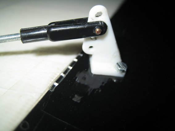 Protože jsou jinak uložená než v Tornádu (serva jsou zespodu a páky směřují skrz éro nahoru), tak jsem musel udělat páky nové, aby se vešly do vyhloubeného prostoru a nevyčuhovaly ven. A rovnou jsem už na páky nasadil táhla klasicky jejich zahnutím do Z. Na druhé straně vyčuhují nad prostorem elevonů a jsou zakončeny závitem. Na ty jsem přidělal šroubovací vidličky od MPJETu (ty čínské moc nevzbuzovaly důvěru) a bylo nachystáno na páky, co budou na elevonech.