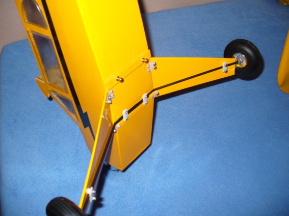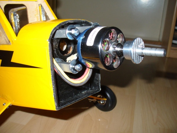 Sestava podvozku není v uvedeném návodě vůbec patrná a pravděpodobně ji nepoužiji, protože při létání na travnatém letišti by to asi nedělalo dobrotu. Dále je tam plastová maketa plochého čtyřválcového motoru. V mé krabici chyběla jedna polovina této makety a tak jsem napsal do Astra model a chybějící díl byl do tří dnů doručen (klobouk dolů, byla to rychlost). Trošku jsem ještě postrádal ve stavebnici díly na prodloužení motorové přepážky směrem dopředu - při použití elektromotoru. Vyřešil jsem to však distančními sloupky z duralového jeklu 10x10 mm, na které jsem připevnil upínací kříž motoru. Díl je přišroubován přes motorovou přepážku svorníky průměr 5 a samojistícími maticemi M5.