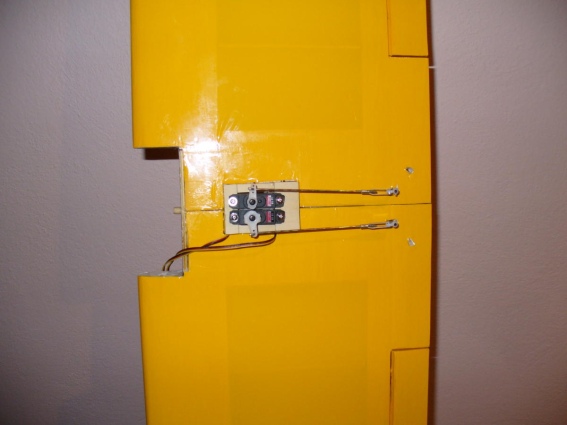 Pohonná baterie 6s LiFe 2300 mAh a pro napájení palubního systému zvláštní zdroj 5s NiMh 1900 mAh Sanyo Eneloop. Všechna použitá serva jsou od firmy Hitec. Na směrové a výškové kormidlo je to HS-422, pro ovládání křidélek bylo v originálním návodu použité jen jedno servo - to se mně však nelíbilo a tak jsem místo pro servo v křídle rozšířil a umístil tam serva HS-81 dvě, pro každé křidélko jedno. Snad to bude dobrá volba. V úhledné krabici jsou v plastových sáčcích zabaleny dvě poloviny konstrukčního křídla, v němž jsou již osazená křidélka, výškovka a směrovka jsou osazena kormidly taktéž.