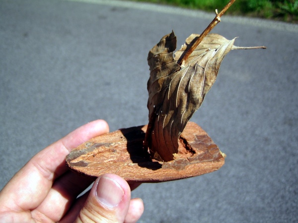 Minulý týden, na výletě během dovolené v Českém ráji, jsem se zrovna loudal za ženou a synem, když mně padl do oka kus kůry. A tak nějak mně došlo, že bych si mohl po letech (deseti, dvaceti, ... ?) vyřezat lodičku. A začal jsem s tím hned během cesty a s chutí přímo nevídanou. Žádná extra nádhera to nebyla, ale ten pocit, že jsem si něco těma svýma pazourama vykrouhlal, ten stál za to. A na závěr po vystrojení "plachtou" a kormidlem jsem ji hned otestoval na nebližším rybníku. Plula celkem pěkně, ale bez vysílačky to nebylo ono Smile