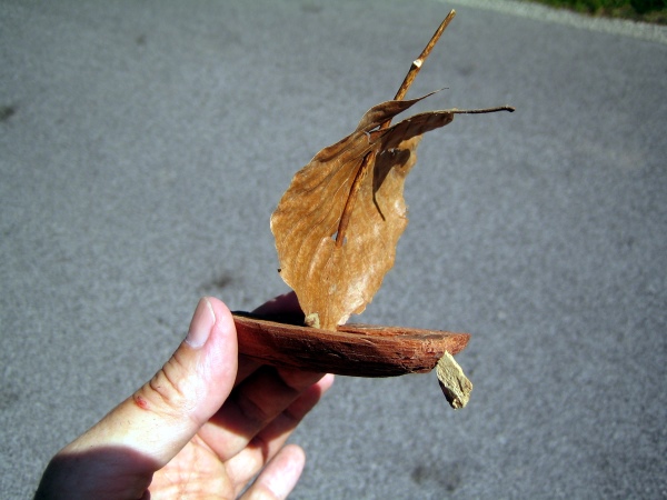 Kdyz jdem na prochazku (lodka mi pripomenula, ze pro samou praci jsme jiz dlooouho nikde nebyli s rodinkou Crying or Very sad ), tak vzhledem k tomu, ze mam nozik stale ssebou, pravidelne neco pizlam. Synek (Cool to obkouk a kdyz dostal nyni vlastni nozik, sam (zase jsem drel v hokne, tak sli sami) si tedkom vyrizl pokus o lodicku.
