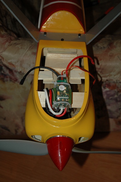 Macek to je.... Váha navíc oproti Kataně je taky poznat. Ty předstartovní kreace byly testování baterek - jsou to Lipolky, co jsem je při nabíjení zkratoval a nebyl jsem si jistý, jestli nejsou načaté spojovací plechy uvnitř. Testy na zemi a dva lety vydržely, snad budou fungovat i dál.