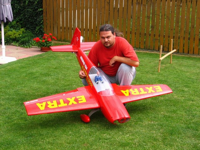 No takze, zacnem tim horsim Smile - delaj to cinani. Jednou jsem to videl tusim u pelikana, ale ted jsem sjel net a nenasel jsem xeft (v ramci CR) kde by to prodavali (krom hangaru kde to je sice nova stavebnice ale z druhe ruky). Koupil jsem to v JR v bazaru. Tyden jsem premyslel jestli to mam vzit nebo ne, ale pac su na akrobaty tezce ujetej a na extru obzvlast, bylo proste jasny, ze do toho ve finale skaknu. Vazi to 3.5kg holy. Pocitam do toho s motorem 1.5kg (35ccm benzim mvvs) takze ve vysledku bych se mel vlezt do sesti kilo, coz pise navod.