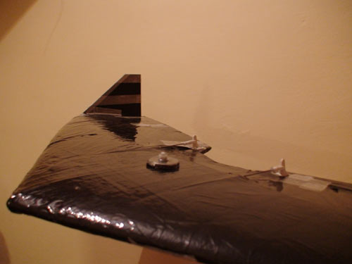 Už nevím, zda to bylo v návodu, ale já jsem udělal několik řezů do směrovky podél horní línie profilu, protáhl řezem proužek skelné pásky a přilepil k horní straně křídla a druhý konec ke spodní straně a dží (snad je to srozumitelně napsané).