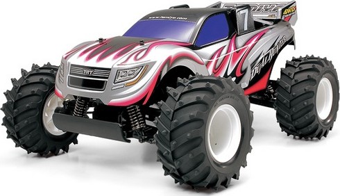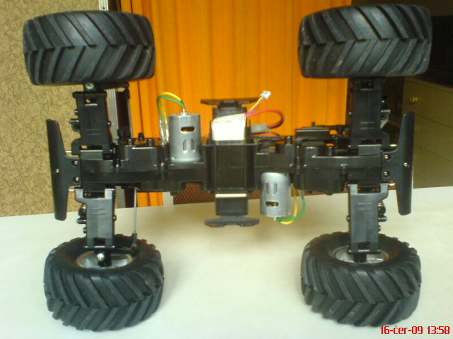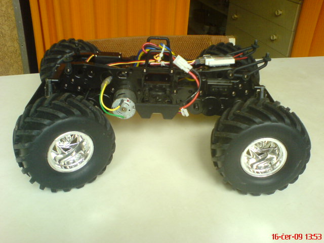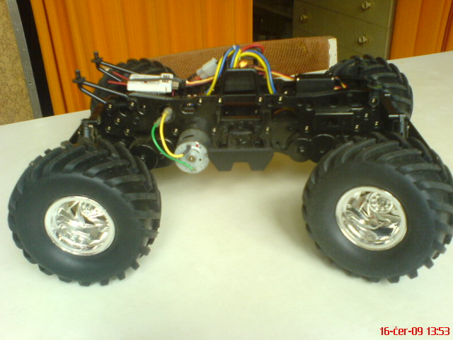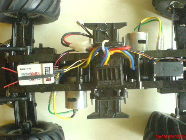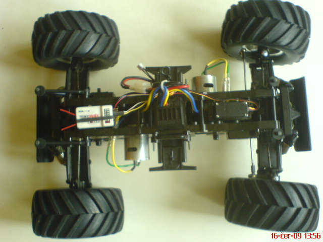 Prijimac je Assan 2,4 GHz, regl to ma digitalni pro dva motory SS typu 540,servo je Hitec 3,5kg,napajeni LiPo 3S1P 1700 mAh.