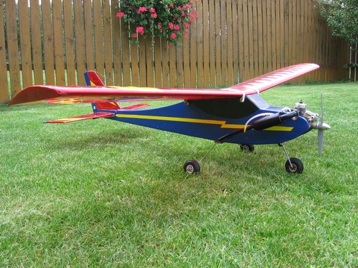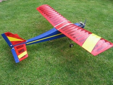 Text a foto: Cloggymeat Psát o tom, kolik let jsem se přemlouval k návratu k modelařině zde není na místě a tak se rovnou vrhnu na zážitky, které mi tento model připravil. Stručný popis: konstrukce Jaromír Pipek, plánek objednán z Model Hobby magazínu. Rozpětí 1250, délka 990, motor 2 - 2,5 ccm. Hornoplošník ovládaný S,V,M. Alfu jsem nafasoval od kamaráda ve skoro letuschopném stavu. On se díky ní dostal ke spalovákům a teď se přiblížil čas, aby ji trápily moje první kroky v RC létáni (kdysi jsem létal s rc větroni, ale to už ani není pravda). S opravou jsem začal hned první večer co jsem ji donesl domů. Křídlo bylo v pořádku, stačilo jen vrátit pozitivy konců křídel přefouknutím fénem. Na trupu bylo práce víc, ale nic složitého, upravit motorové lože pro můj motor mvvs 2,5ccm, vyrobit novou VOP a osadit rc vybavením. VOP jsem vyrobil z tvrdší balzy 5mm a potáhl oracoverem, panty klasické zadlabávací. Nakonec zalepit epoxidem do trupu a namontovat páku kormidla. RC vybavení jsem zakoupil to skoro nejlevnější, tzn serva standart Carson a přijímač Hitec HFS 05MS s krystalem od firmy Jeti. Ale nejslabším článkem byla v té době ještě moje vysílačka a to ze setu skylady. (Díky skylady jsem se vrátil k modelářství a teď jí budiž police v garáži lehká). Druhý den byl model osazen a skoro připraven k letu. Chybělo ho jen trochu vizuelně odlišit od prvního majitele. Z polepovací folie zakoupené v jednom hyper super bau hornb jsem nalepil kabinu a nějaké ty rychlé pruhy. Poté už stačilo jen pořádně nabít zdroje ve vysílači a přijímači a hurá na start. Po měsíci létání se skylady jsem stál v Budkovicích na startovní ploše s nastartovaným mvvs 2,5 ccm, který rezonoval s oracoverem na křídlech mojí Alfy. Chtěl jsem odstartovat ze země, ale příďový podvozek vytrčený (podle plánu) dopředu způsobil po pár metrech kotrmelec. Znovu nažhavit, nastartovat a opět na start. Kamarád (původní majitel/stavitel Alfy) říká: "Ok já ti to hodím". Můj adrenalin se v ten okamžik dal prodávat na hektolitry a než jsem stačil pořádně sevřít knypl vysílače, byla Alfa ve vzduchu, začla škytat a šla k zemi. Znovu jsme zopakovali startovací proceduru a důsledněji naladili motor. Jako přes kopírák se opakovalo naše postavení na startovací ploše, plný plyn, hod a konečně bez kuckání Alfa stoupá k nebi. Po pár průletech mám vytrimováno a kamarád hlásí "tyvole nadechni se!!!!". Po pár dalších průletech a rozdýchání se si konečně začínám užívat letu. Loping s 2,5ccm jde vykroužit obrovského průměru a výkrut se směrovkou jde za pomoci výškovky taky. Na přistání jsem dlouhý protože jsem nečekal kluz skoro jako u větroně. Dal jsem ještě tři lety a valil domů. V následujících týdnech jsem provedl ještě několik úprav. Kola většího průměru, otočení úhlu přední podvozkové nohy směrem vzad kvůli přistání a startům z travnaté plochy. S předním kolem vytrčeným dopředu udělal model vždy kotrmelec a utrhl se náhon od serva. Po otočení byla v�echna přistání a starty příjemným zá�itkem. Mezitím jsem pořídil nové rádio Hitec Flash 5SX a posunul se o kousek dál ve vybavení. Další úprava byla zvětšení kormidel, s nimi jdou udělat dva výkruty po sobě (podotýkám, že Alfa nemá křidýlka). Díky této úpravě se stal z Alfy pěkný divočák, který si při jemném ovládáni samozřejmě ponechal všechny vlastnosti cvičného hornoplošníku. Poslední úpravou a to velice zásadní byl přechod ze spalovacího motoru na elektro. Po tom co mi odešla moje letitá mvvs jsem chtěl zkusit elektro. Pořídil jsem mig 600, regulátor jes 20, a sedmičlánek 2000mAh. Z Alfy se stal rekreační elektrolet pro pohodové večerní polétaní. Na stole se už totiž netrpělivě převaloval akrobat Monarch na 6,5ccm kterého jsem přes zimu v dílně podle plánku Pavla Bosáka stvořil, ale to už je jiná kapitola. Jinak Alfu můžu vřele doporučit jako první spalovák. Má absolutně nezáludné stabilní vlastnosti, po přetažení nikam nepadá, do vývrtky se ji nechce a když už tak ven z ní vypadne okamžitě. Kluz bych přirovnal skoro k větroní. Stavebně a konstrukčně je model velice jednoduchý a odolný.