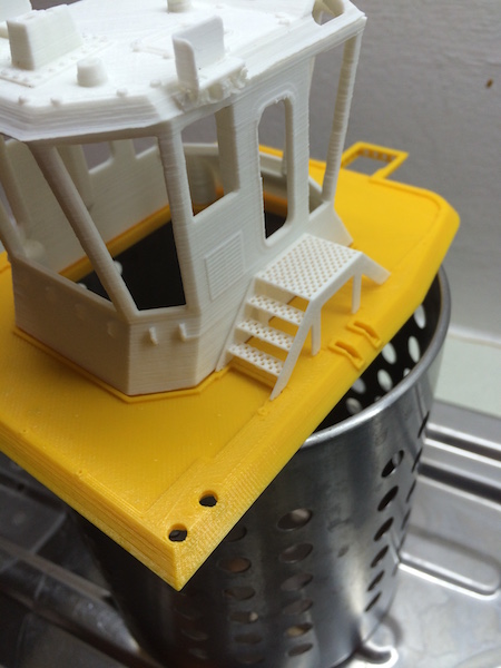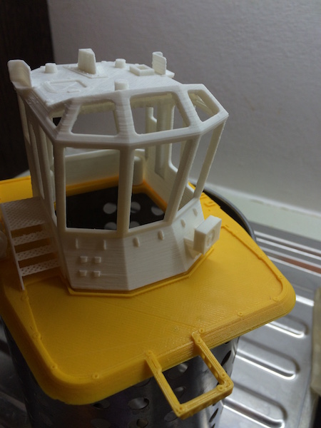 Já tomu rozumím, už jsme to probírali. Prostě zatím ta technologie za ještě stravitelné peníze neumí to, co bych si představoval. Ale jsem přesvědčený, že za pár roků to bude na takové úrovni, že nebude problém tisknout na 0,01 mm a to potom už bude vyhlazené parádně. Jinak jsem na tom podobně jako ty - nepotrpím si na 100% maketovosti, ale na pečlivé a čisté práci. Proto se i na ten tvůj remorkér nedívám jako na maketu, ale osobně bych se s tím povrchem zatím nesmířil a vyráběl bych jen takové věci, které je velice obtížné udělat ručně - a to jsou právě třeba ty schody a nebo ta klimatizační jednotka a nebo také ta okna s nýtovanými rámy, co jsi mně natisknul.